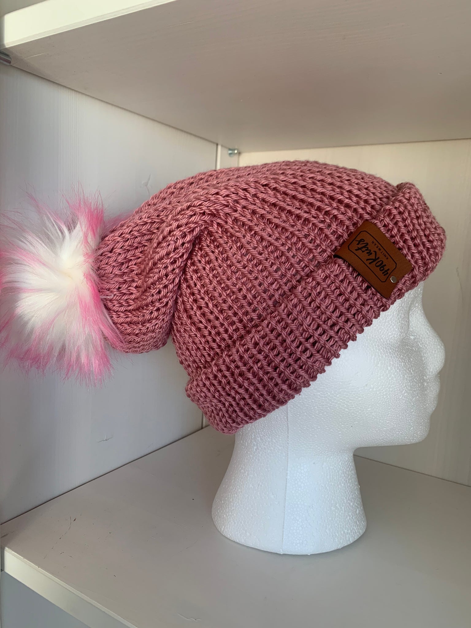 This toque is a luxurious and plush knit toque best suited for fall and winter. If you would prefer this hat without a pompom, just let us know.